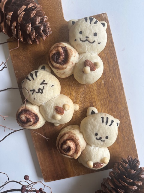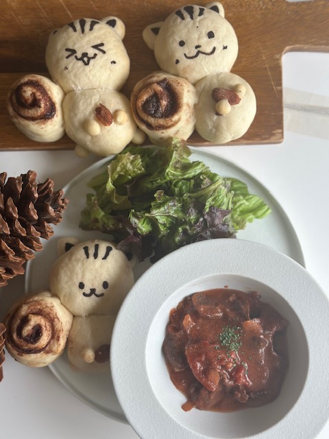 お腹とお顔にはキャラメルチョコとナッツを入れた可愛いリスパンで今年ラストレッスンを締めくくりたいと思います